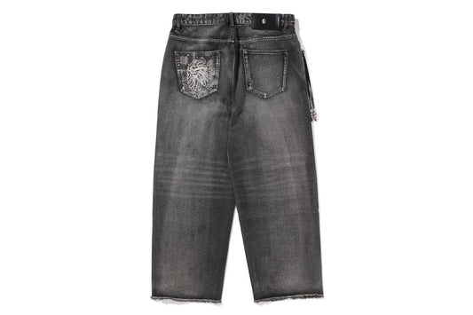 BAPE 黑色基本款佩斯利邊飾牛仔褲