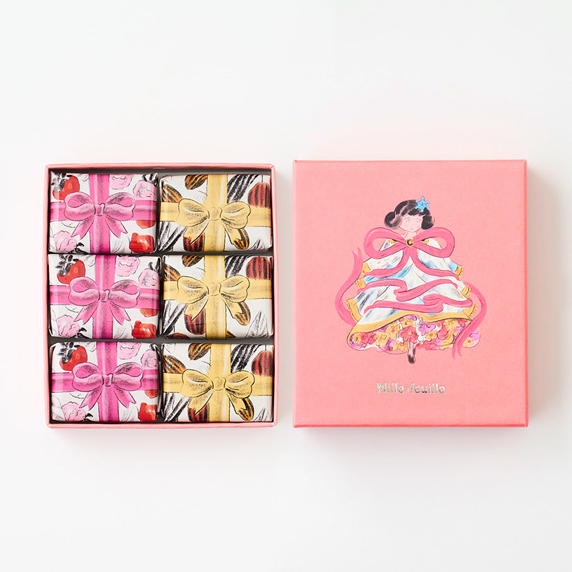 這款綜合禮盒包含3個草莓覆盆子口味和3個巧克力杏仁口味的千層派,讓您在每一口中都能感受到奢華的甜蜜滋味。每個千層派都經過精心製作,適合作為伴手禮或送禮佳品。
