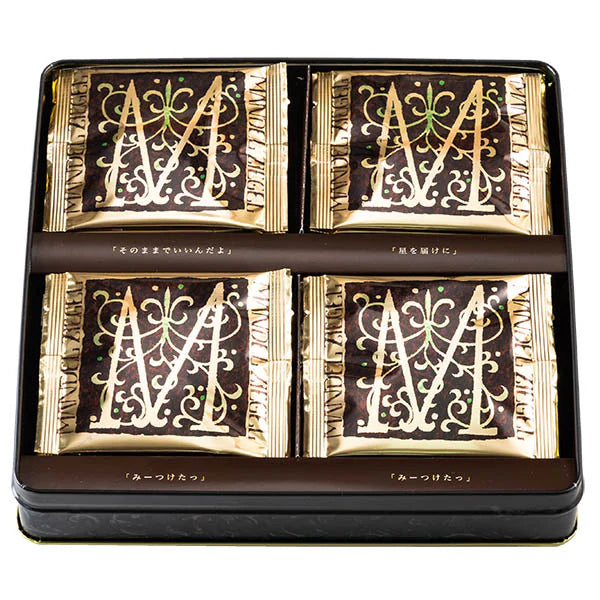 本高砂屋與Paint聖矢合作推出的第二彈紀念罐,內含16片香脆可口的杏仁瓦片餅,搭配熊五郎的特別故事,讓您在享用美味後還能發現驚喜。罐身設計隱藏著三個'M'字母,快來尋找吧!