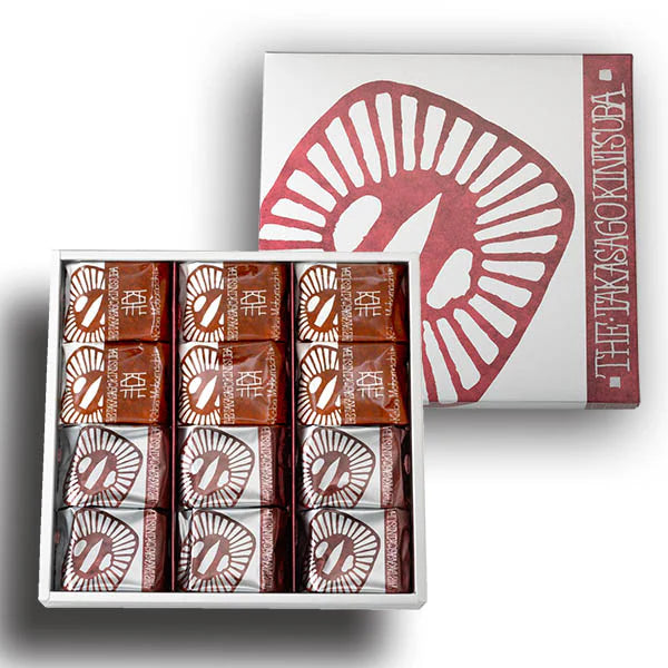 本高砂屋的薄皮高砂金鍔,保留了手工烘焙的獨特口感與風味,搭配北海道產小豆製成的細膩紅豆餡,並加入大塊栗子,為您帶來季節限定的美味享受。每盒包含12個,適合作為伴手禮或送禮佳品。