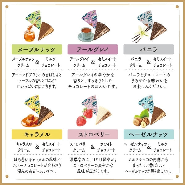 神戶風月堂的法蘭酥巧克力千層酥,層層堆疊香脆的法蘭酥薄餅與細膩的奶油,外層包裹著入口即化的巧克力。此款限量商品提供草莓、焦糖、香草、楓糖堅果、榛果及伯爵茶六種風味,適合作為感謝的禮物、精緻小禮或自我犒賞,讓您享受法蘭酥與巧克力的完美搭配。