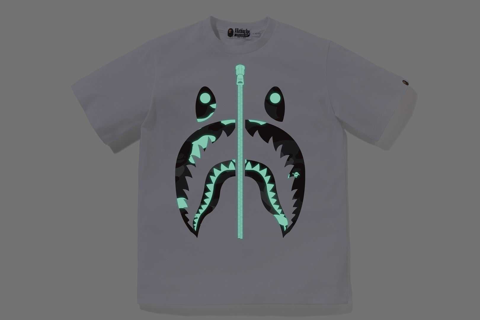 前面以CITY CAMO圖案的SHARK主題進行蓄光印刷設計,能在黑暗中發光。