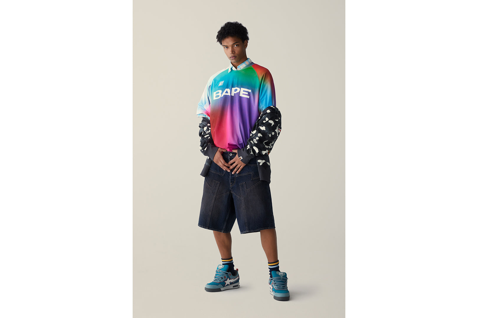 BAPE TIE DYE STA STRIPE PATTERN RELAXED FIT FOOTBALL JERSEY TEE
