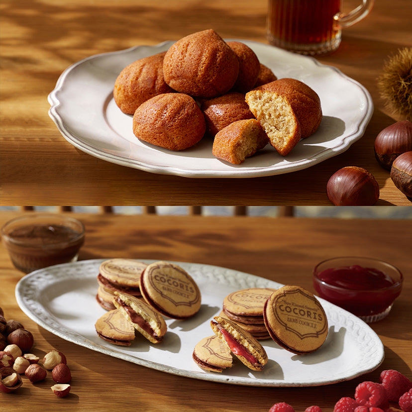 這款Cocoris精緻甜點包含8個榛果沙琪瑪、8個木莓沙琪瑪和4個楓糖栗子芬納許,完美的口感與風味,適合作為伴手禮或送禮佳品。